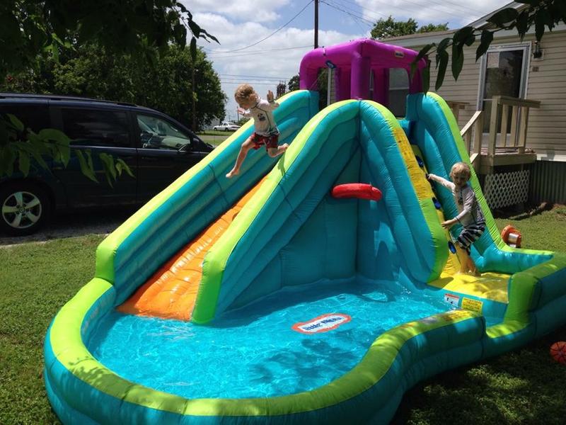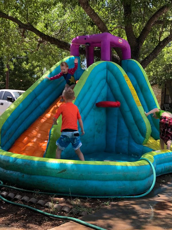The little tikes biggest water slide pool is a fun summer activity for kids and great for exercise too.
